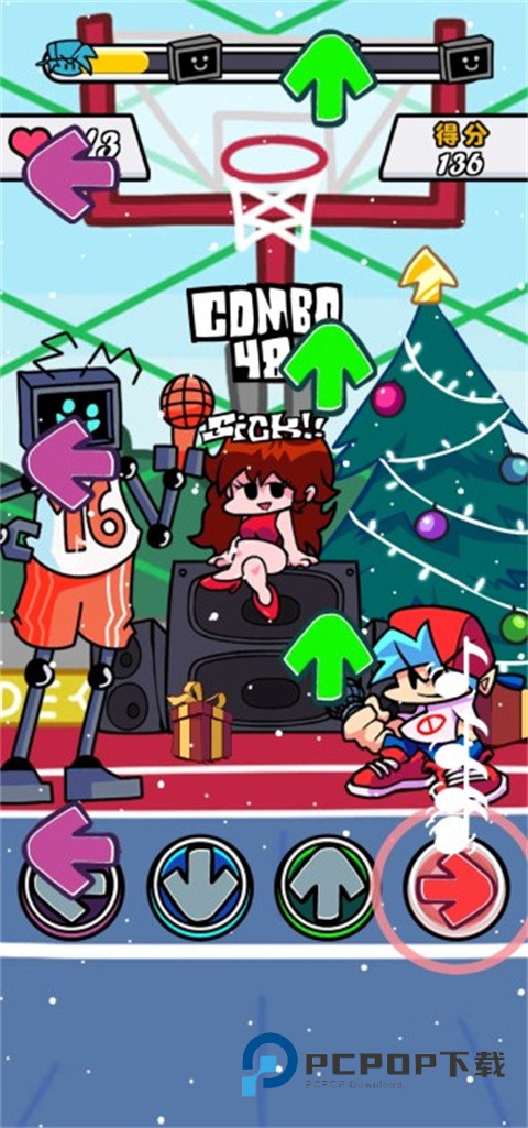玩家操作角色在确切的节拍上点击确切的箭头,游戏的操作相对来说非常的简单,但是随着游戏的进度越快,操作起来会手忙脚乱。