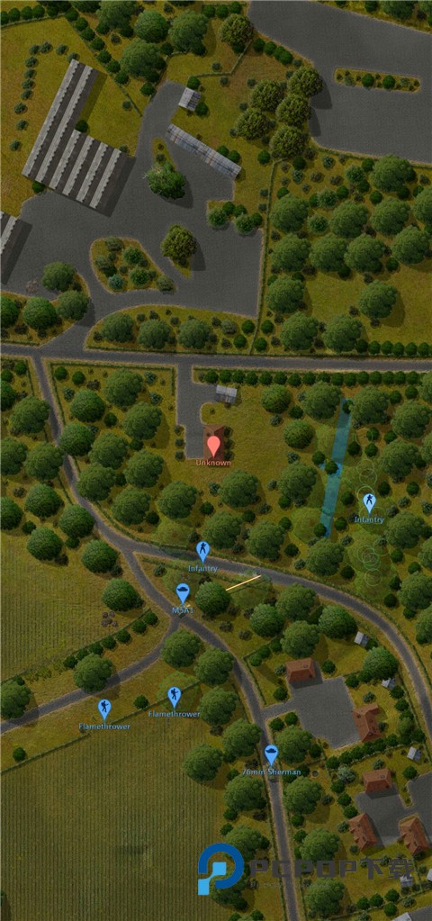 2、发现敌方步兵小队,执行侧翼穿插战术,利用灌木丛的地方视野盲区,对敌人进行包夹。