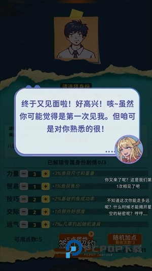 从零开始的钓鱼人生是一款钓鱼模拟类游戏,玩家在游戏中将化身成为一名钓鱼佬,需要通过手机各个品质的鱼竿、鱼线、鱼钩、鱼漂等物品来组成自己的鱼竿进行钓鱼。游戏还包含了属性加点和天赋选择玩家,玩家只需选择自己的成长路线进行加点即可,再也不用担心出现“空军”的情况。值得一提的是游戏还包含了非常丰富的鱼类,玩家可以通过不断结果新种类的鱼来收集图鉴,喜欢的收藏和钓鱼玩法的用户千万不要错过这款游戏。