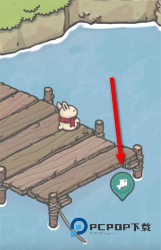 2、接着来到河边的小桥上,点击图标开始钓鱼。