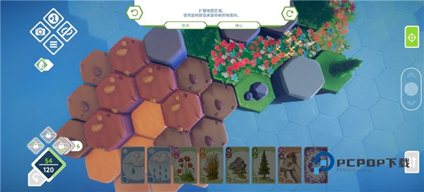 5、之后达到和谐点获得卡牌,我们就可以放置树木、动物等内容在地图中(放置3个相同内容可以合成一个生态)。