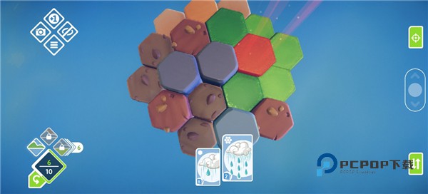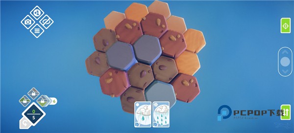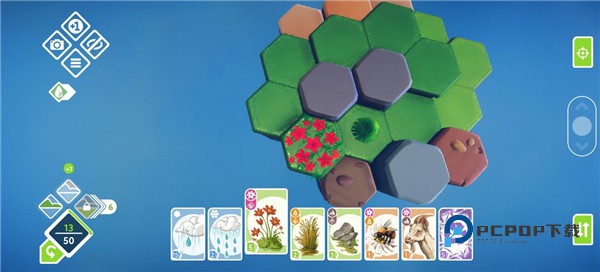 2、玩家在六边形格子上放置“环境卡片”(森林、湿地、珊瑚礁等),通过堆叠不同生态单元形成立体栖息地,从地表到高空均可建造。
