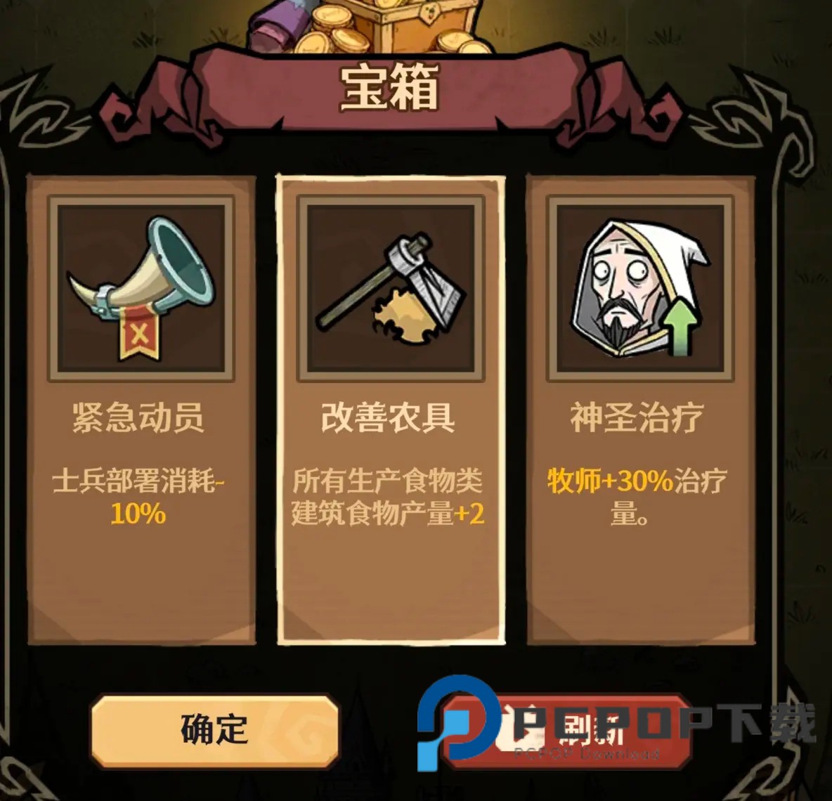 3、金币上前期优先扩建,升级和宝箱奖励先拿改善农具和高效生产,越早越好。召唤强化是刚需,龙属于召唤单位,可以吃到加成,其余宝箱奖励推荐祭司和泰坦的以及所有伤害强化,远程强化。