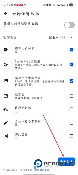 5、选择要清除的数据项,点击删除数据。