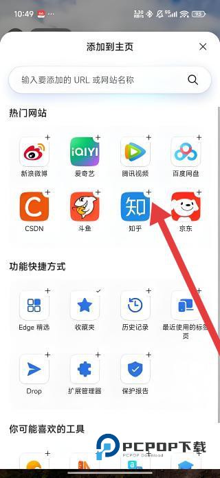 2、进入添加界面后,浏览可选的站点图标与功能快捷方式,在多样选项中定位目标内容,为添加操作做准备。