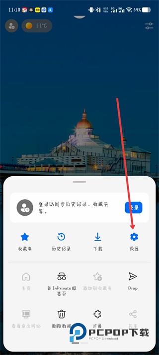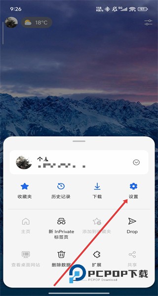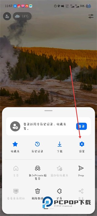 2、在功能面板中,找到设置选项并点击,进入浏览器的设置界面。