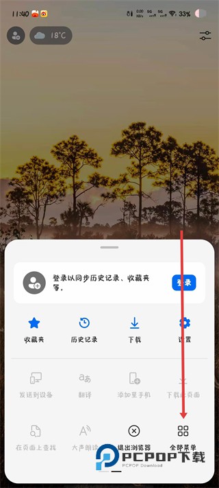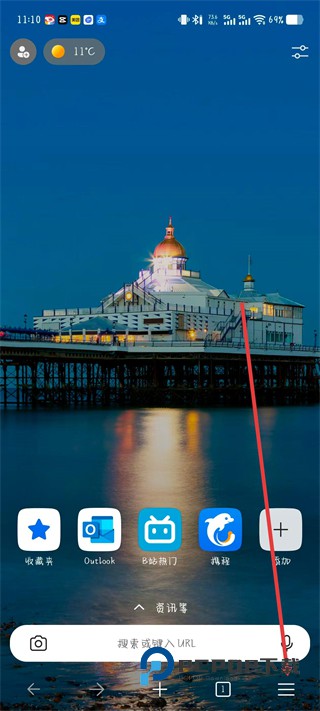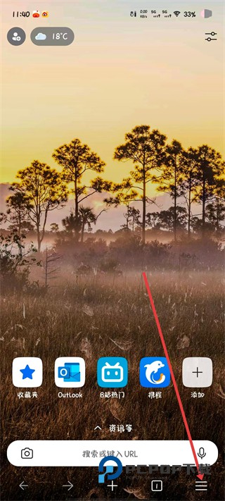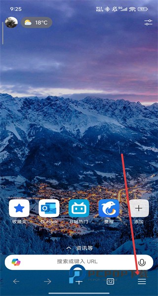 1、在进入到浏览器首页中时,可以点击右下菜单按钮,展开查看功能选项。