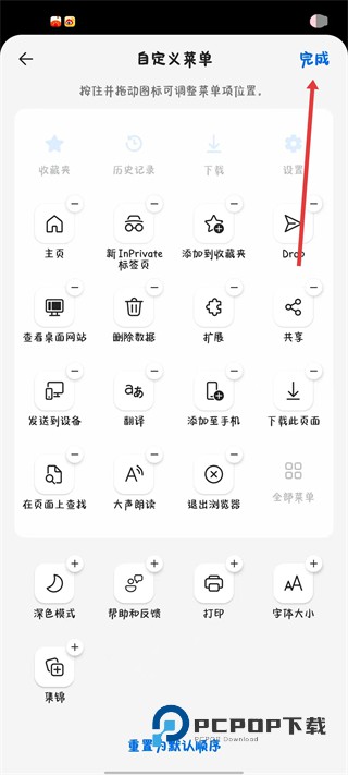 4、按住并拖动菜单项调整位置,或通过加减按钮增减选项,完成后点击完成保存。