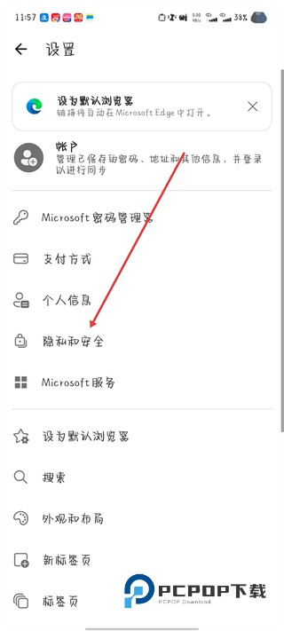 3、在设置页面,点击隐私和安全选项。