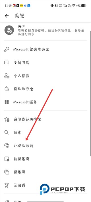 3、在设置界面中,选择外观和布局选项,进入对应页面以调整界面显示样式。
