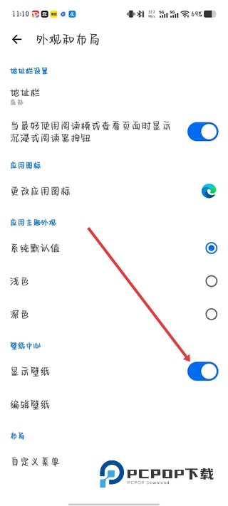 4、在该页面中,找到显示壁纸对应的开关,点击关闭即可关闭壁纸显示。