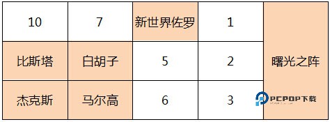 白团剩余成员的取舍上,可根据自己阵型情况酌情取舍,鉴于新世界佐罗的坦度,建议带高输出的马尔高或比斯塔。
