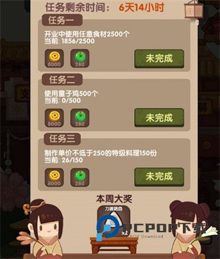 每周五下午一点开启厨神大赛,周日晚上十点结算。晋级后会进入下一个级别的厨神大赛,挑战失败的话不会退级。每次厨神大赛的规则不同。厨神大赛使用官方给的食材比赛,不会消耗自己仓库里的食材。