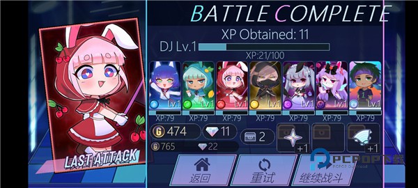 7、战斗结束后可以选择继续战斗、重新或者返回界面;