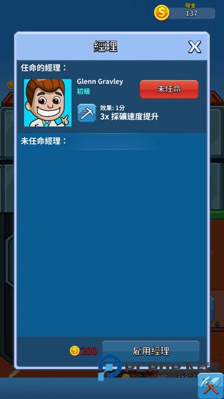 ★雇用经理来增加矿工的动力!经理游戏中的模拟器。
