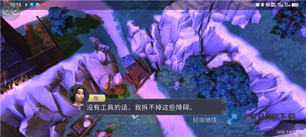 5、之后,继续根据任务前行,碰到有障碍物阻挡玩家前行的话,玩家需要寻找工具清理障碍;