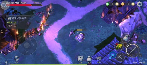 9、之后玩家根据指引,收集木头和石头即可修复桥梁。