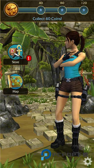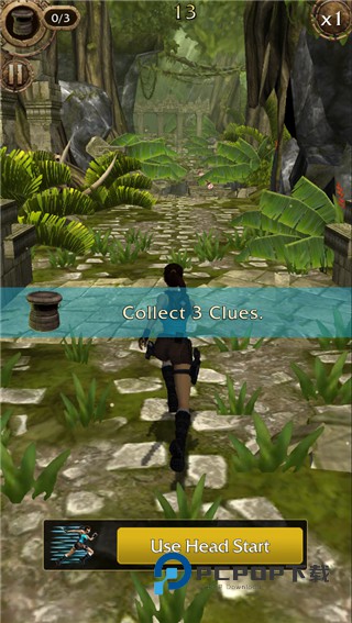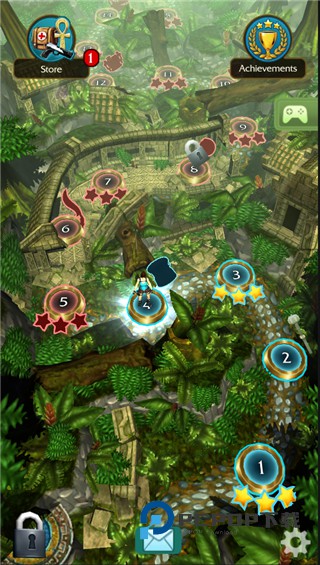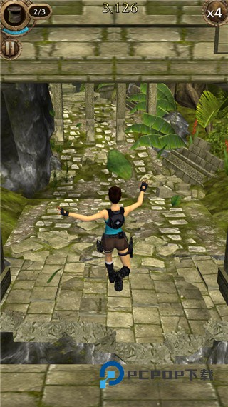 2、同样是上下左右划屏控制着劳拉在遗迹中一路狂奔,躲避陷阱并沿途收集考古道具。