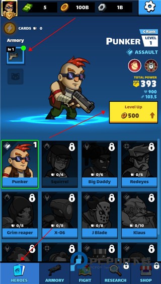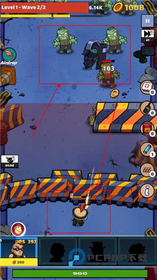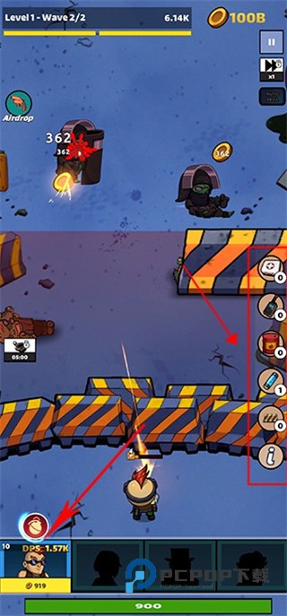 4、击杀敌人后会掉落金币,我们可以点击角色来对其进行升级,还可以点击右方使用道具