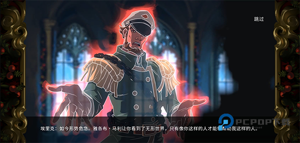 2、然后就会过一段剧情内容,这里可以长按右上角来进行跳过。