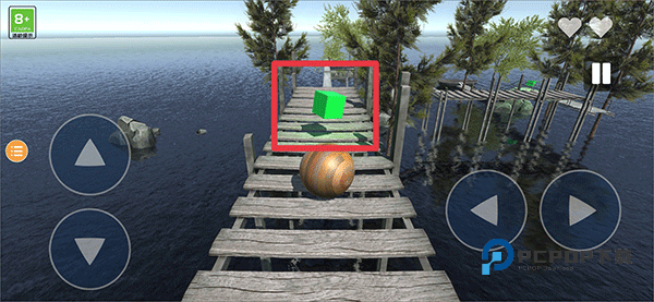 6、游戏开始时一共有5次机会,若球不小心掉入水中,或是落入陷阱时将会被扣除一个爱心,当5个爱心全部扣除时,游戏结束需重头再来
