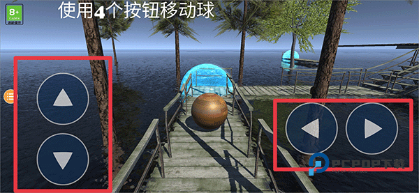 2、进入游戏后,使用上下,左右四个按钮来移动球