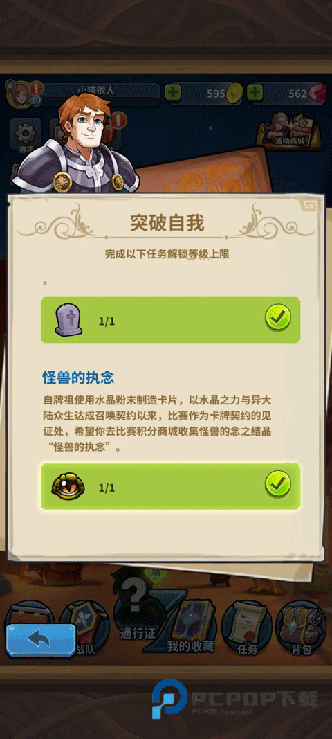 需要完成三个任务:天梯战斗一局,秘境战斗一局,比赛使用25积分兑换一个道具(进去选卡放弃就行,别浪费时间),10级才能解锁比赛所以前期别做乱七八糟的直接天梯硬怼升级