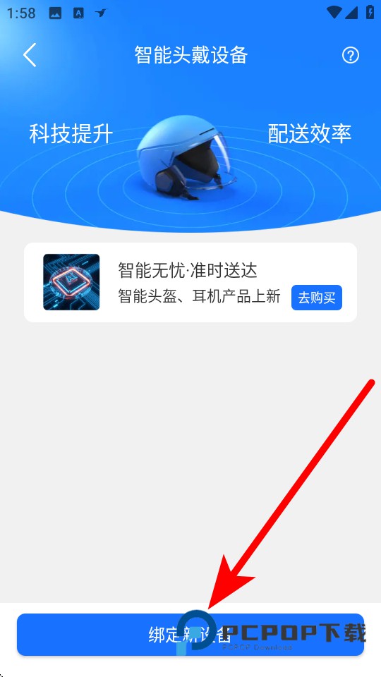 4、在智能头戴设备页面,点击绑定新设备,按提示完成头盔绑定操作。