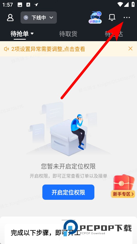1、在蜂鸟众包首页,需要点击右上角三个点图标,弹出功能选项。