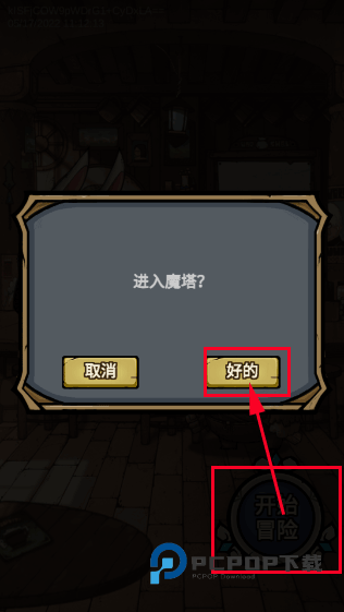 1、进入游戏后我们点击“开始冒险”,进入魔塔;