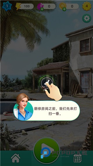 1、在本站下载快乐合并之家,先过一段剧情,然后打扫院子。