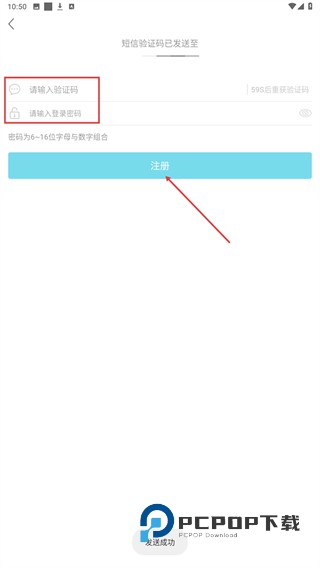 3、再输入验证码、密码后,点击注册的按钮即可。