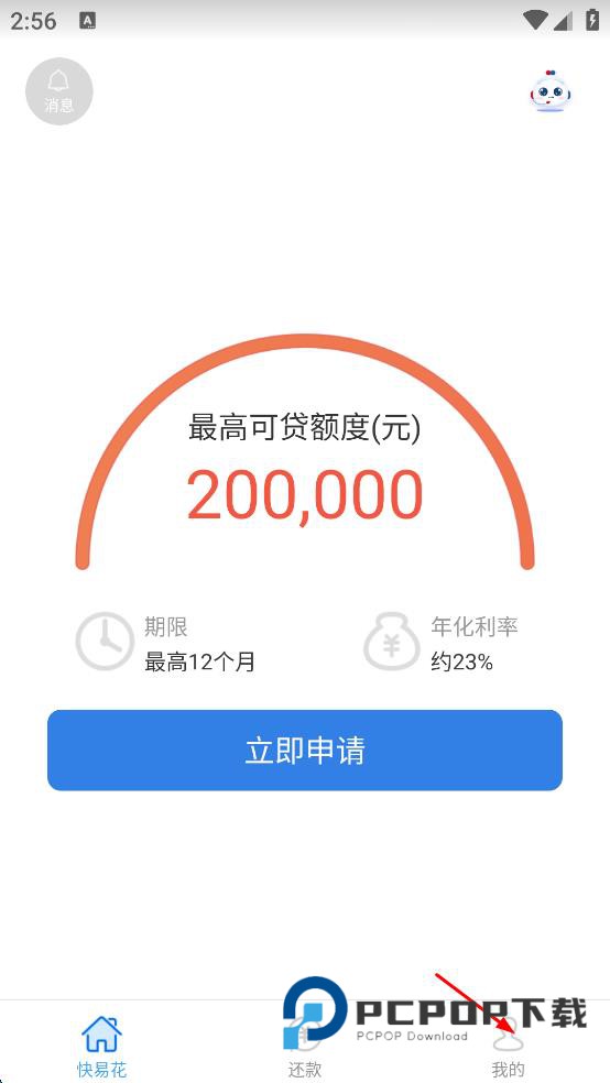 2、在APP主界面,能看到最高可贷额度等信息,点击页面右下角“我的”选项,进入登录相关页面。