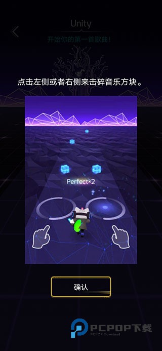 1、开局,先记住操作方式,点击左侧或者右侧来击碎音乐方块。