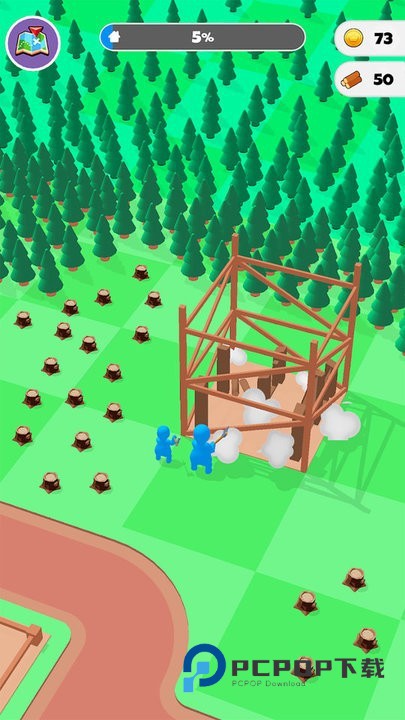 1、拿起斧头和你的队员一起砍树,收集木头并切割成木材、金币并扩建你的团队,建造出超棒的建筑。