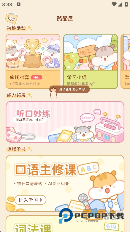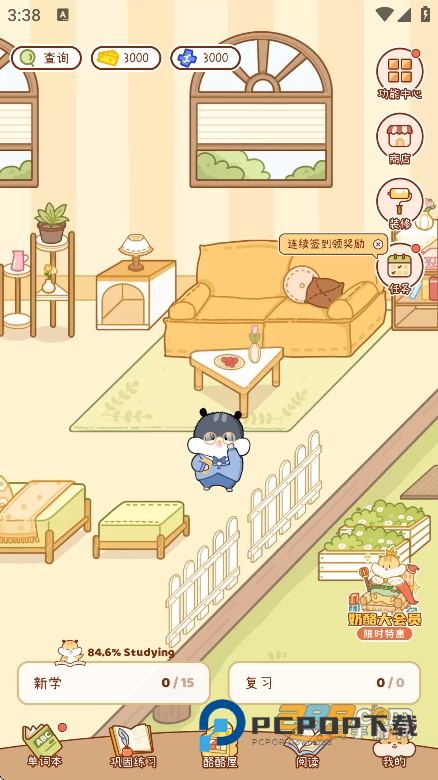 趣味养成元素:包含可爱的仓鼠神兽养成体系,用户通过盲盒机、签到、记单词、复习单词等方式获取盲盒券,有机会开出不同品种的仓鼠;每日学习可获得奶酪食物、随机道具、抽奖券等用于喂养宠物;商城内可用奶酪购买普通食物和家具用品,装饰仓鼠小屋,解锁多样场景风格,还有特殊家具需完成特定任务或触发彩蛋获得。