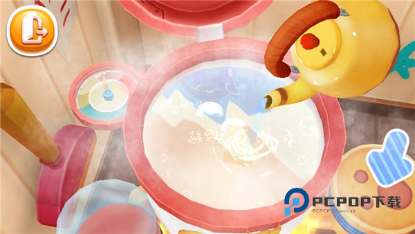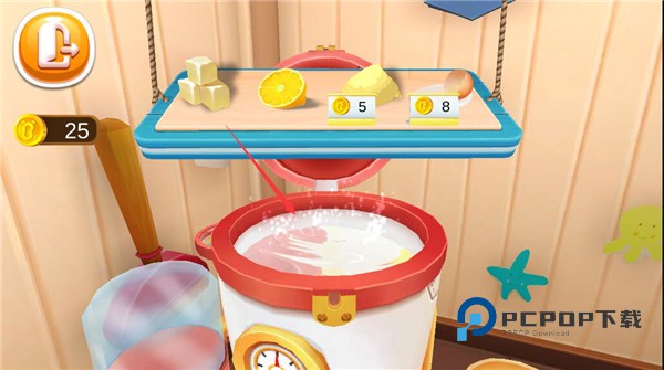 宝宝希望糖果的口味更丰富?那就得在糖浆原液上“下功夫”。料理台上,榨汁机、磨粉机都给出“提示”,答对了,可以在糖浆中加入多样的果汁、细粉末。