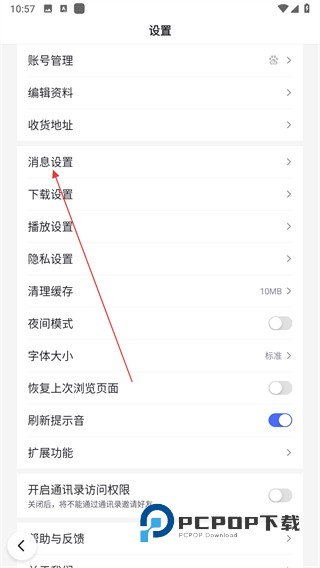 3、在设置页面,点击消息设置选项。