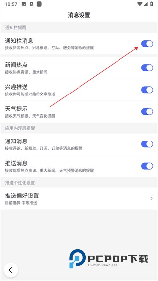 4、找到通知栏消息选项,点击开关将其关闭。