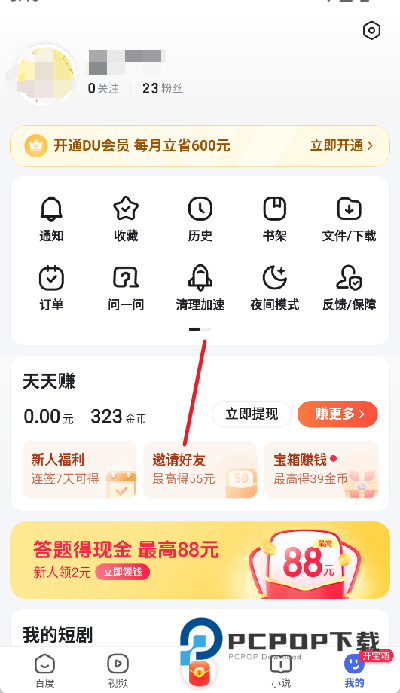 1、打开百度极速版,点击底部导航栏的我的选项,进入个人中心页面。