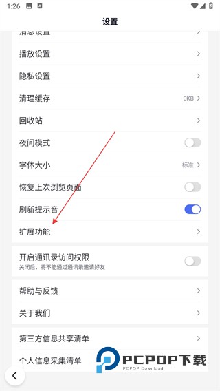 2、进入百度的设置管理界面,在设置页面里找到扩展功能选项并点击。