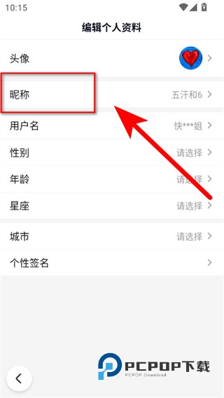 4、在编辑个人资料页面,点击昵称选项,进入设置昵称的编辑界面。