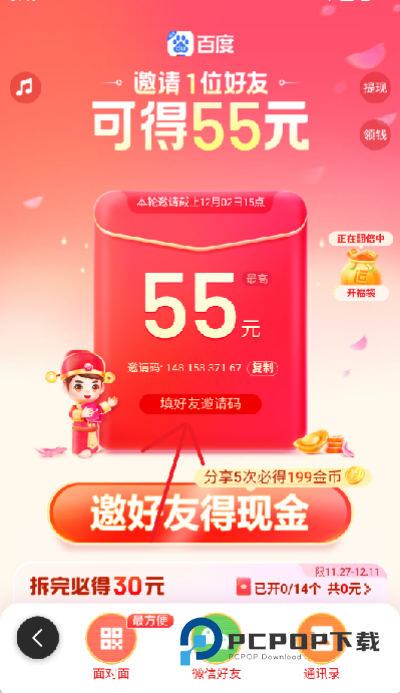 3、点击后进入邀请好友活动界面,在中间的红包位置有一个【填写好友邀请码】的选项,点击一下即可填写好友的邀请码。