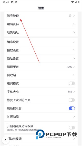 2、在个人中心页面中,点击设置图标,进入设置页面后选择账号管理。