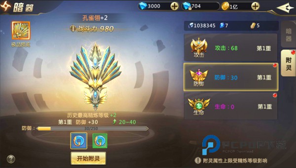 可以消耗附灵材料,对暗器的一条属性进行附灵,附灵可以提高暗器的生命、攻击以及防御。