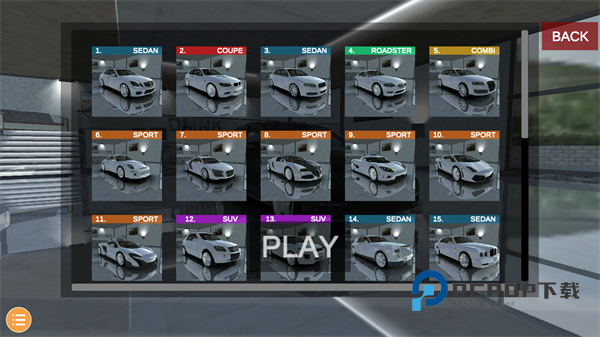 2、点击左上角Car selection 可以选择喜欢的车辆。