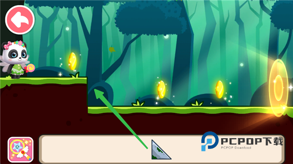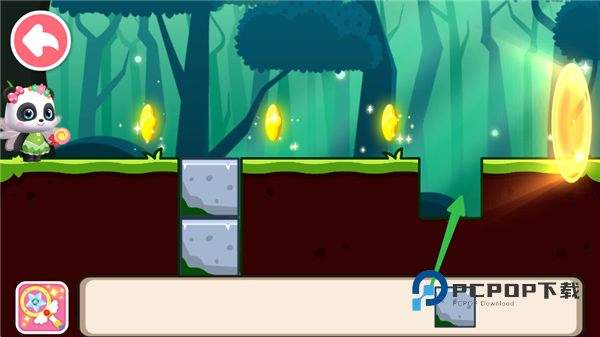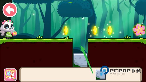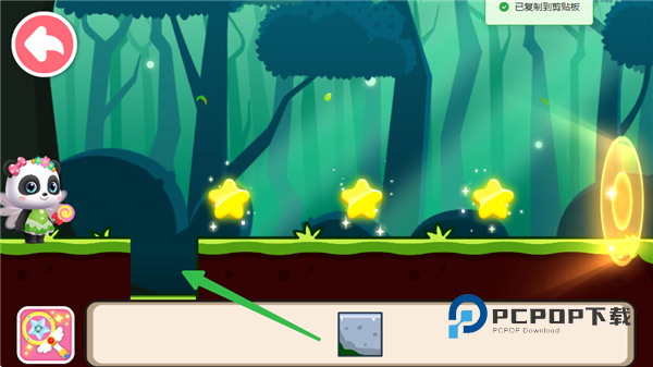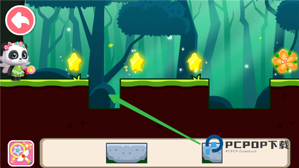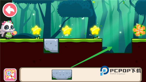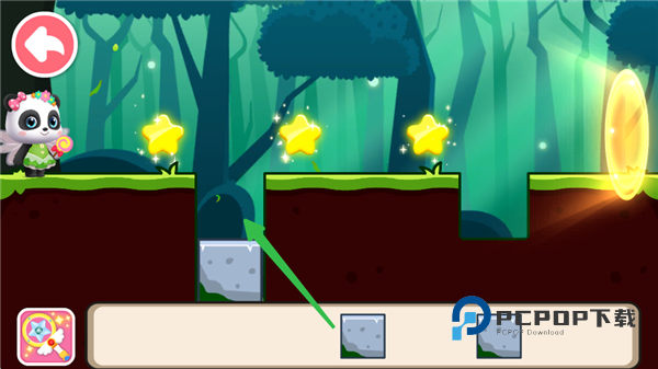 将石块移动到地面上的缺口处,拼成一条完整的路,让小熊猫通过。