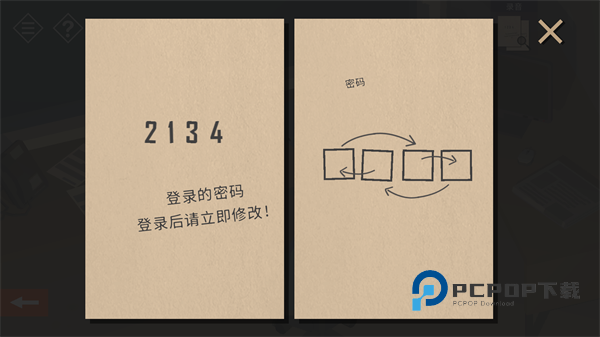 3、移开桌子上的键盘和文件,拾取两张密码相关的【纸条】。