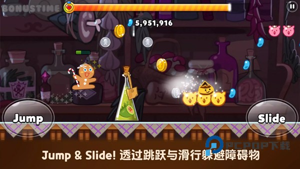 5、利用跳跃与滑行,获得果冻或闪避障碍物!