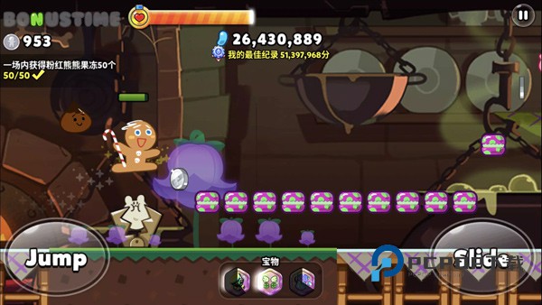 1、利用角色的弹跳和滑动技能,获取果冻,或者规避障碍。
